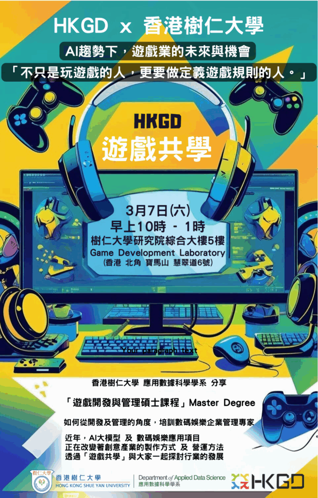 Level Up Your Career: Master of Science in Game Development and Management – In Collaboration with the Hong Kong Game Development Association (HKGDA)